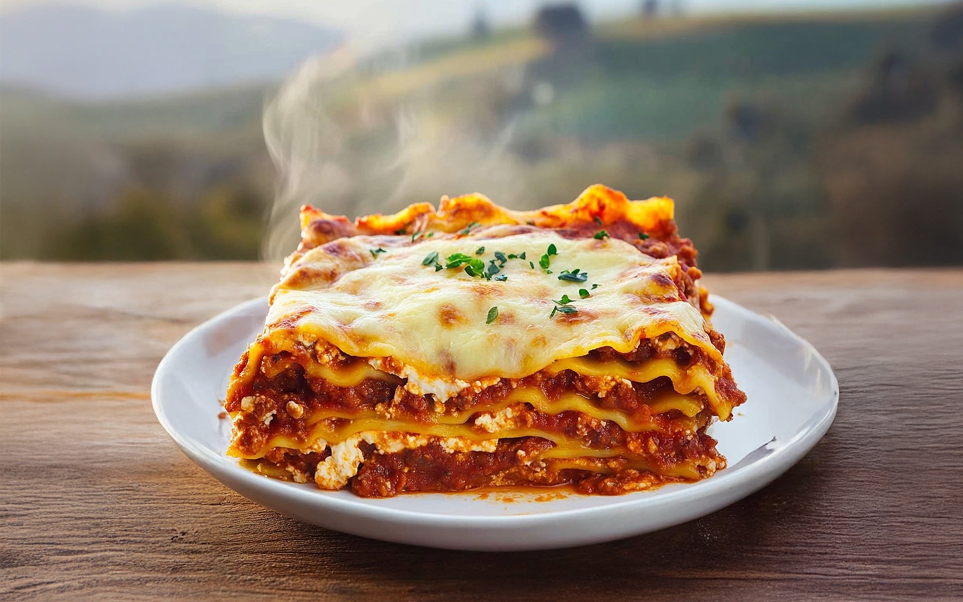 Lasagna is one of Italys most iconic dishes, made from layers of pasta alternated with ragù sauce, béchamel, vegetables, and cheeses such as Mozzarella, Ricotta, and Parmigiano Reggiano.