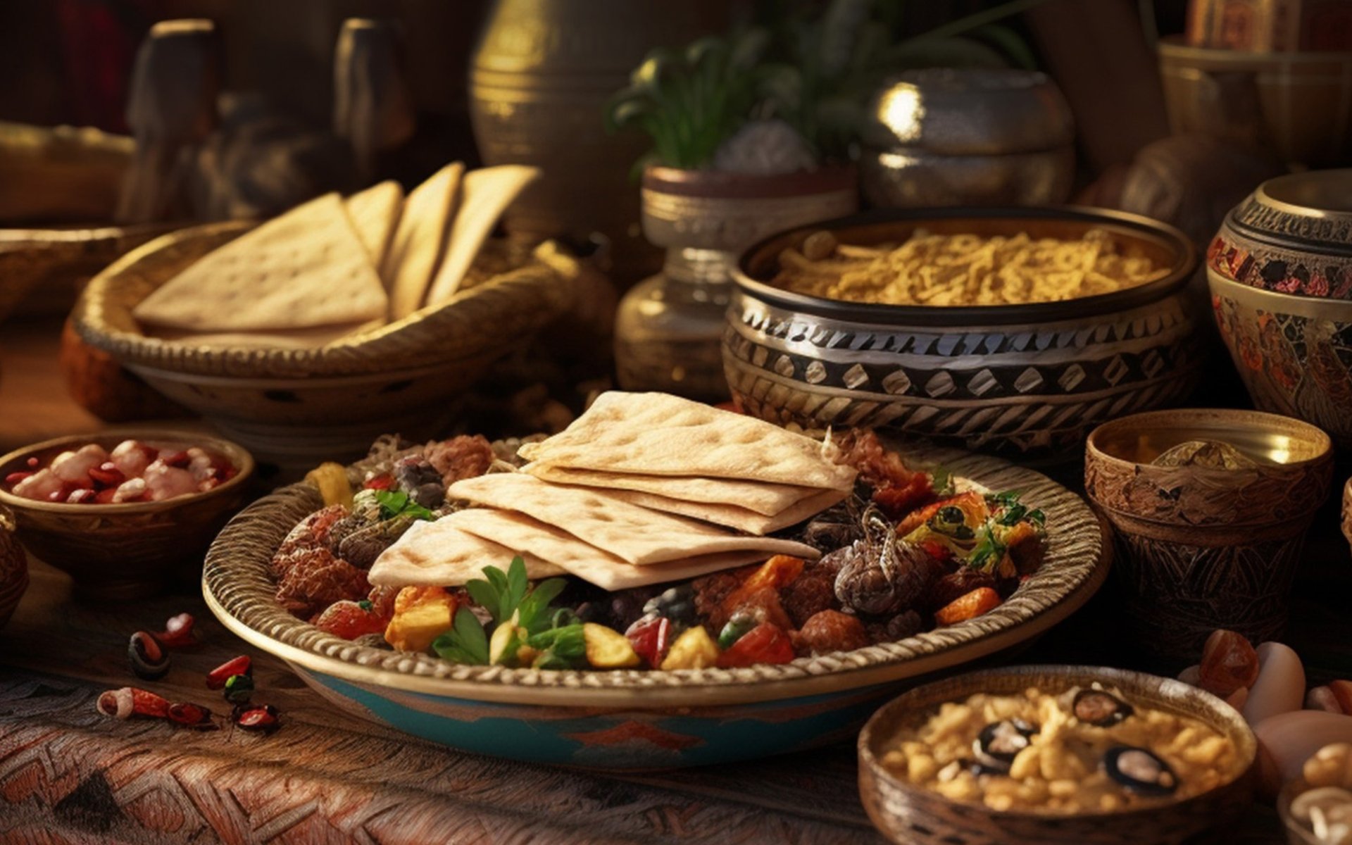 Each of Cleopatra's feasts typically featured a wide array of dishes seasoned with exotic spices and herbs. Her chefs were renowned as culinary experts, skillfully blending various ingredients like coriander, cumin, cinnamon, saffron, and mint to create unique flavors for each dish for their beloved queen.