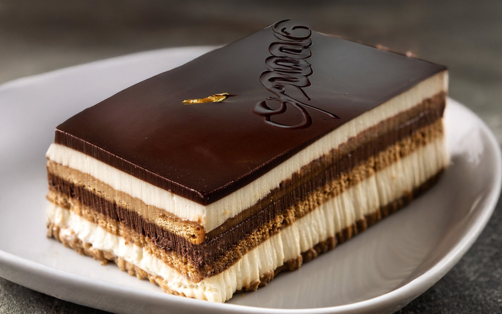 Initially, he aimed to create a more modern cake where one bite would deliver the taste of all ingredients simultaneously. He then used almond sponge cake soaked in coffee syrup, layered with chocolate ganache and coffee buttercream, creating a multi-layered cake. The exterior was then coated with chocolate and decorated with gold leaf or cocoa powder.