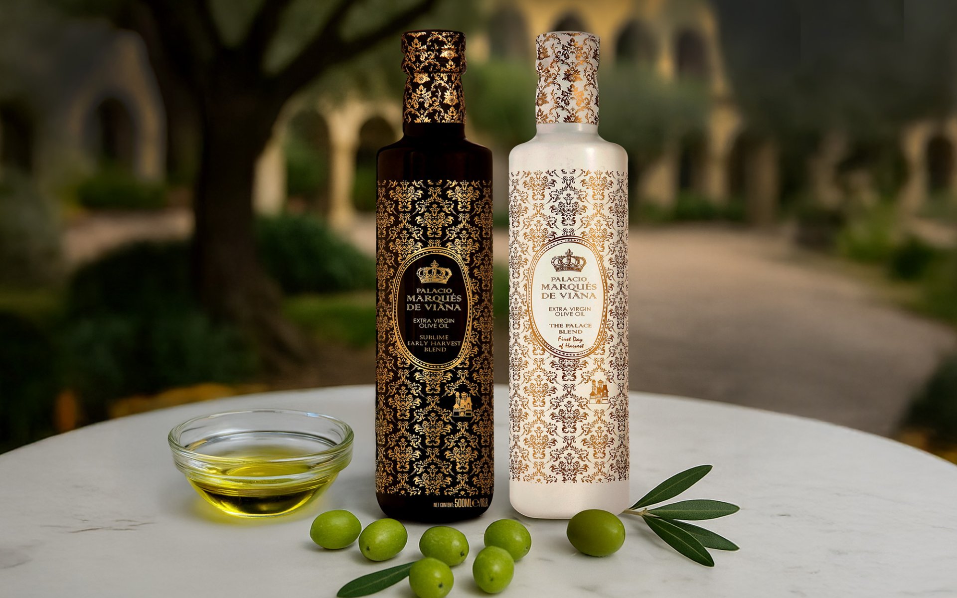The bottles of Palacio Marqués de Viana are designed with motifs inspired by the architecture of the Marqués de Viana Palace and its grand halls, reflecting the brands heritage, tradition, and refined craftsmanship.The brand has received numerous international awards for its outstanding Extra Virgin Olive Oils. Notable products include the Sublime Blend, known for its smoothness and luxurious character. Among its accolades are a Gold Medal at Olive Japan (2013) and recognition in Flos Olei (Best 2023).