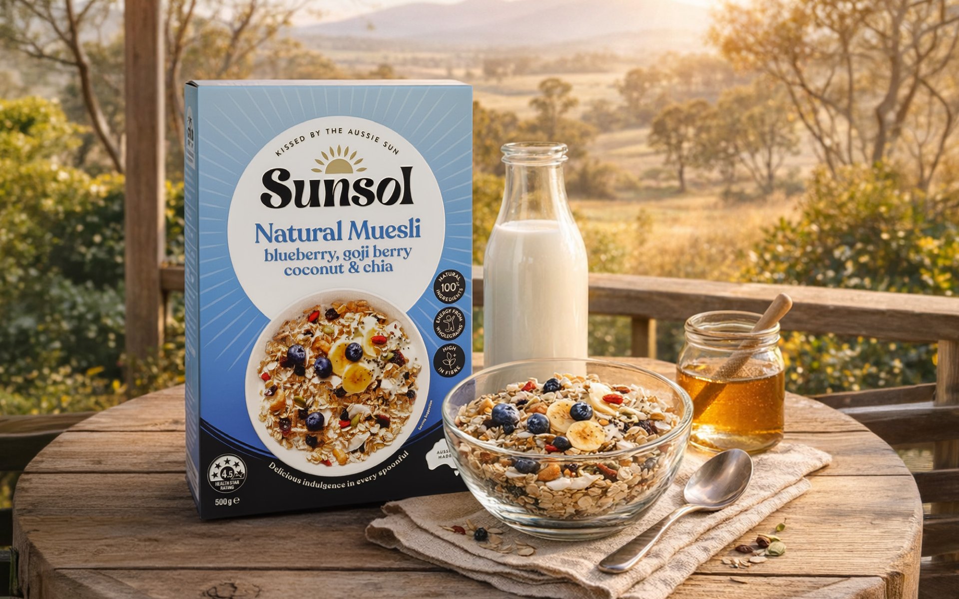 Sunsol is a leading health food brand from Australia specializing in the production of muesli, granola, and a variety of healthy snack products. The brand was originally established under Select Harvests, one of Australia’s largest producers and distributors of almonds.One of Sunsol’s early successes was the launch of its “10+ Series” muesli range, which includes six nutrient-rich recipes. The key concept behind this series is the use of more than 10 natural ingredients in each recipe, carefully selected from whole grains, dried fruits, nuts, and various seeds.
