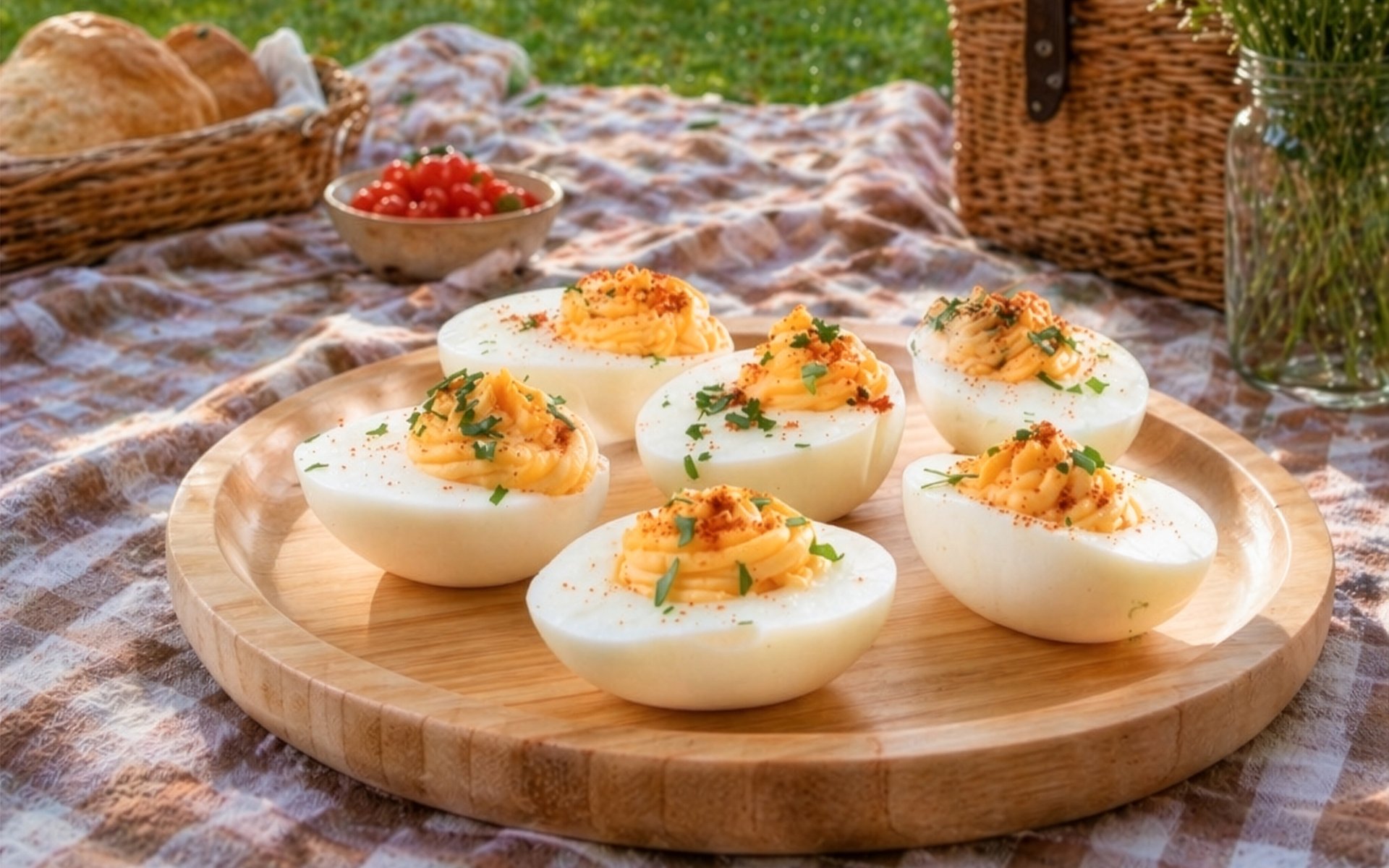 “Deviled Eggs” are a European-style side dish consisting of hard-boiled eggs that are cut in half, with the yolks removed and blended into a smooth mixture with seasonings such as mustard and mayonnaise. The seasoned yolk mixture is then returned to the egg whites, and the dish is typically finished with a sprinkling of paprika. Deviled Eggs are commonly served chilled and are distinguished by their slightly spicy and tangy flavor from mustard and paprika. Although the preparation method is simple and requires only a few ingredients, this dish carries a history that dates back to ancient times and has remained highly popular. In fact, the United States officially celebrates “National Deviled Eggs Day” on November 2 each year.