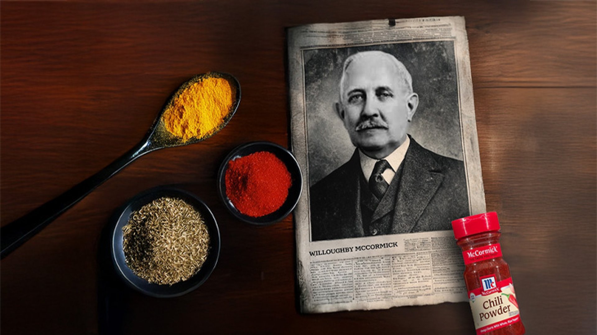 McCormick (แม็คคอมิค) ก่อตั้งขึ้นในปี ค.ศ. 1889 โดย Willoughby McCormick ชายหนุ่มวัยเพียง 25 ปีที่เริ่มต้นธุรกิจในห้องใต้ดินเล็ก ๆ ที่เมืองบัลติมอร์ รัฐแมริแลนด์ เริ่มจากผลิตภัณฑ์ง่าย ๆ อย่างไซรัป รูตเบียร์ และสารแต่งกลิ่นรส ก่อนจะขยับเข้าสู่โลกของเครื่องเทศอย่างเต็มตัว