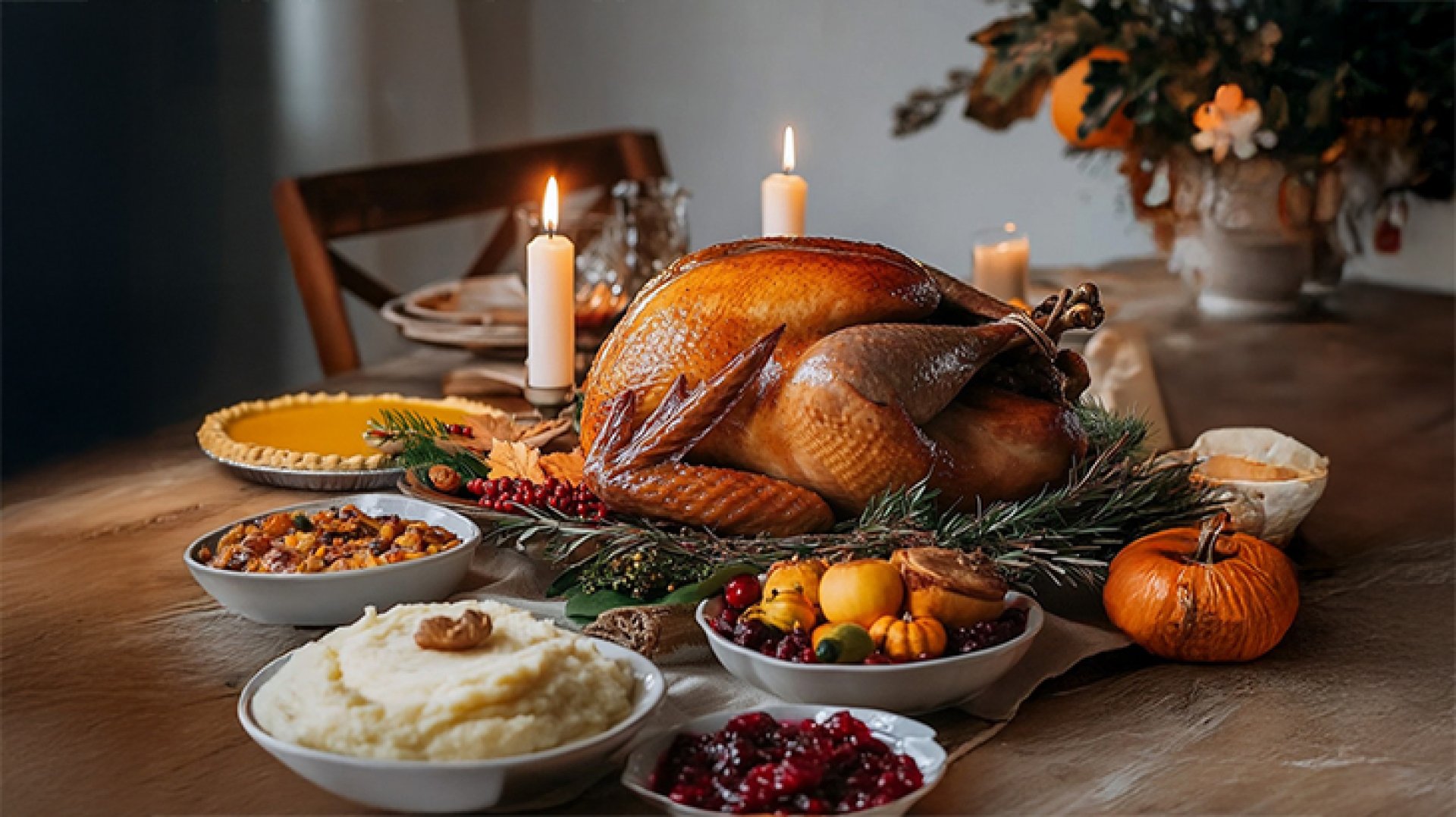 โต๊ะอาหารในวันขอบคุณพระเจ้าจะเต็มไปด้วยเมนูสุดคลาสสิก ได้แก่
