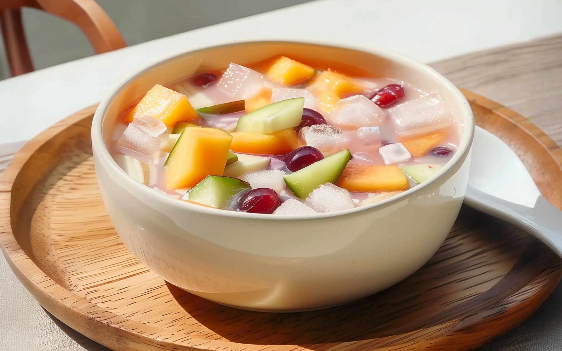 โดยผลไม้ที่เลือกใช้นั้นไม่จำกัดประเภท เป็นได้ทั้งหมดผลไม้ท้องถิ่นตามฤดูกาล และผลไม้นำเข้าจากต่างประเทศ นอกจากนี้ยังนิยมใส่ส่วนผสมอื่นๆ เพิ่มเติม โดยเฉพาะวุ้นมะพร้าว วุ้นแต่งกลิ่นประเภทต่างๆ นมข้นจืด น้ำกะทิ และเมล็ดแมงลัก เพื่อเพิ่มรสชาติและเนื้อสัมผัสที่หลากหลายในหนึ่งถ้วย