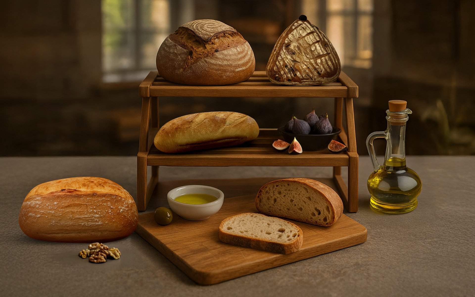 Sourdough Artisan White Bread: ขนมปังยีสต์ธรรมชาติทรงรีที่มีเปลือกด้านนอกกรอบบาง แต่เนื้อด้านในหนึบหนับ นุ่มฟู และมีโพรงอากาศกระจายอยู่ทั่วแผ่น ขนมปังชนิดนี้มีรสเปรี้ยว และเค็มเล็กน้อย พร้อมกลิ่นหอมบางเบาของแป้งที่ผ่านการหมัก