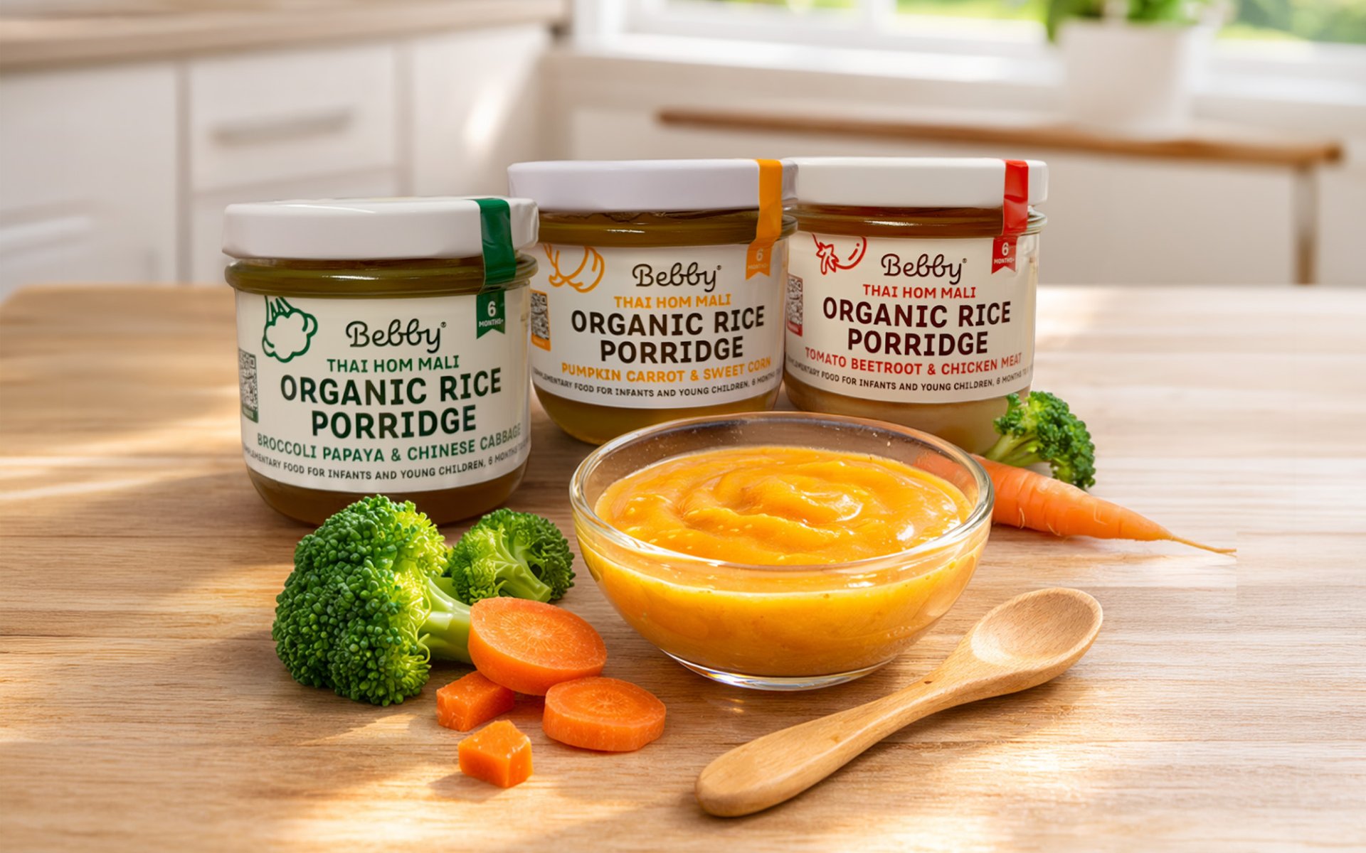 ข้าวต้มออร์แกนิกที่ผลิตจากข้าวหอมมะลิไทยคุณภาพสูง ผสานกับผัก และโปรตีนจากธรรมชาติในสูตรที่หลากหลาย อาทิ ข้าวต้มผสมฟักทอง แครอท และข้าวโพด, ข้าวต้มผสมหัวหอม หัวไชเท้า กะหล่ำดอก และอกไก่, ข้าวต้มผสมมันม่วง กะหล่ำม่วง และอกไก่, ข้าวต้มผสมมะเขือเทศ บีทรูท และอกไก่ และข้าวต้มผสมบร็อคโคลี มะละกอ และผักกาดขาวทุกสูตรได้รับการออกแบบให้เหมาะสมกับเด็กในช่วงเริ่มต้นรับประทานอาหารเสริม โดยมุ่งเน้นทั้งคุณค่าทางโภชนาการ ความอ่อนโยนต่อระบบย่อยอาหาร และการปลูกฝังนิสัยการรับประทานผักตั้งแต่วัยเยาว์